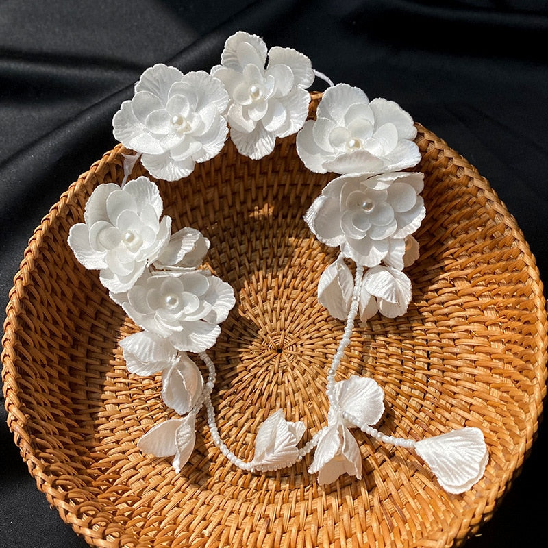 花嫁様のお耳元を優美に彩るイヤーカフ。ピアスホールがなくてもお楽しみいただけるデザインで、上品なスタイルを演出します。