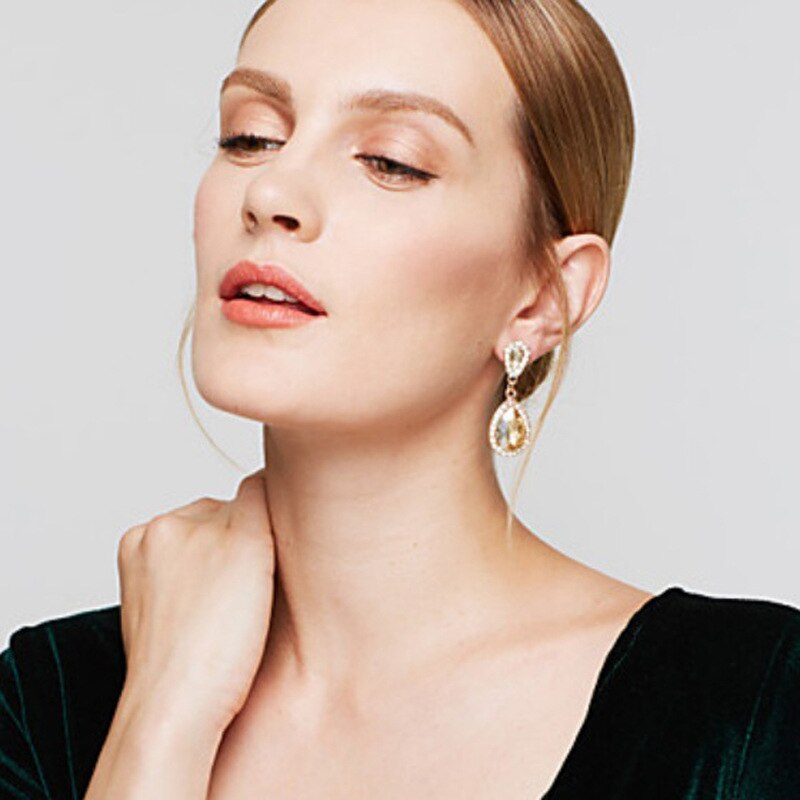 ご新婦様のお顔周りで華やかに輝く、気高いシャンパンカラーのビジューが目を惹くピアスです。