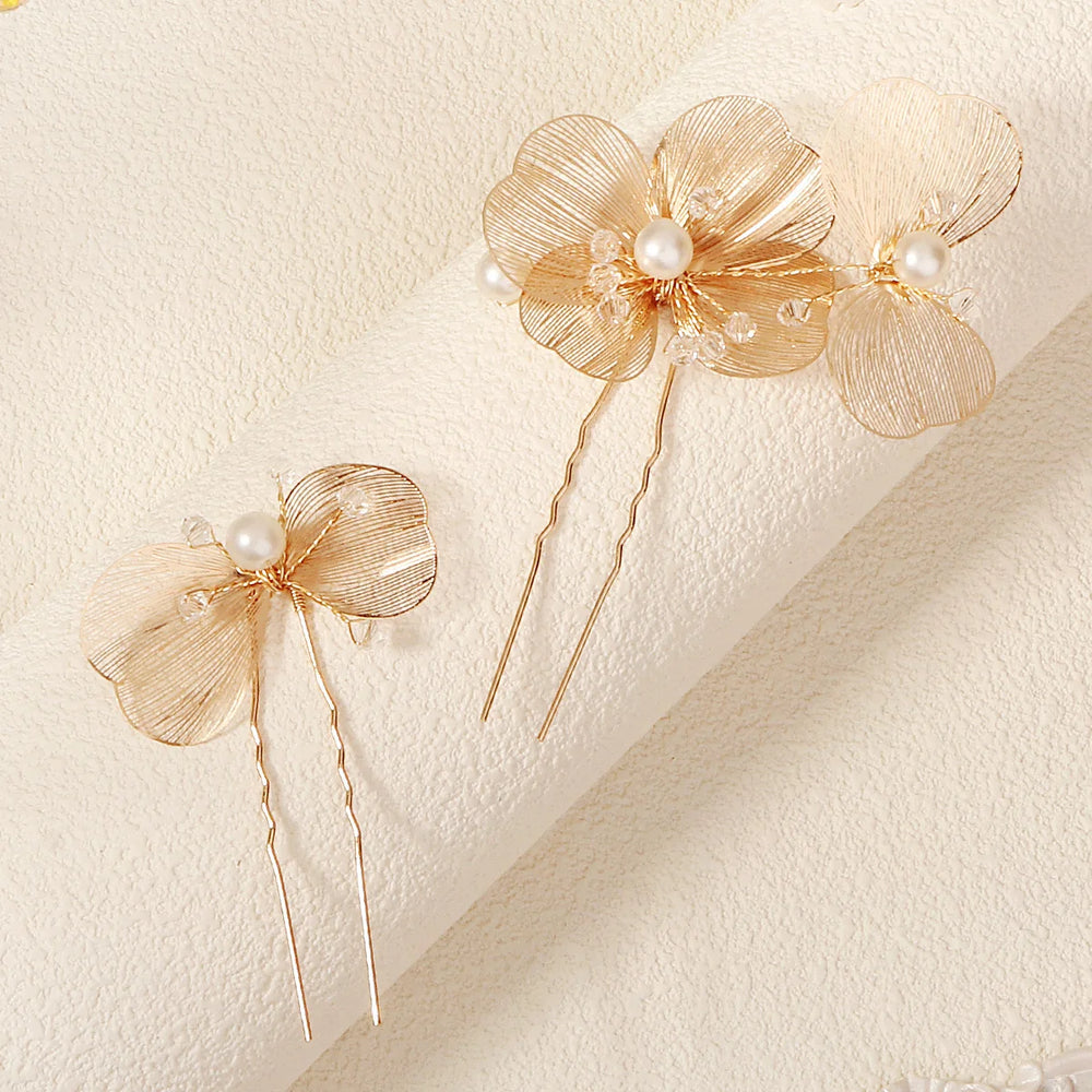 小ぶりながら花嫁様のヘアスタイルに愛らしいトッピングを添えるヘアピン。スタイリングを一層華やかに特別感溢れる印象に演出します。