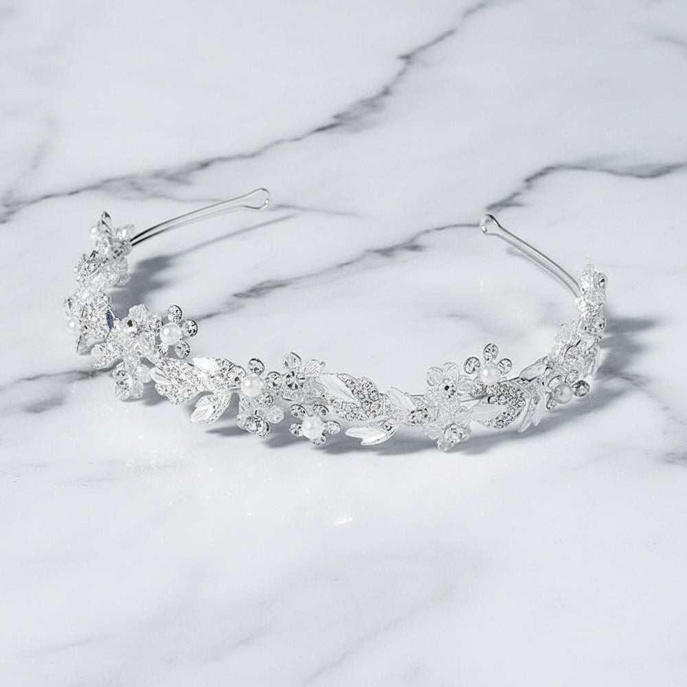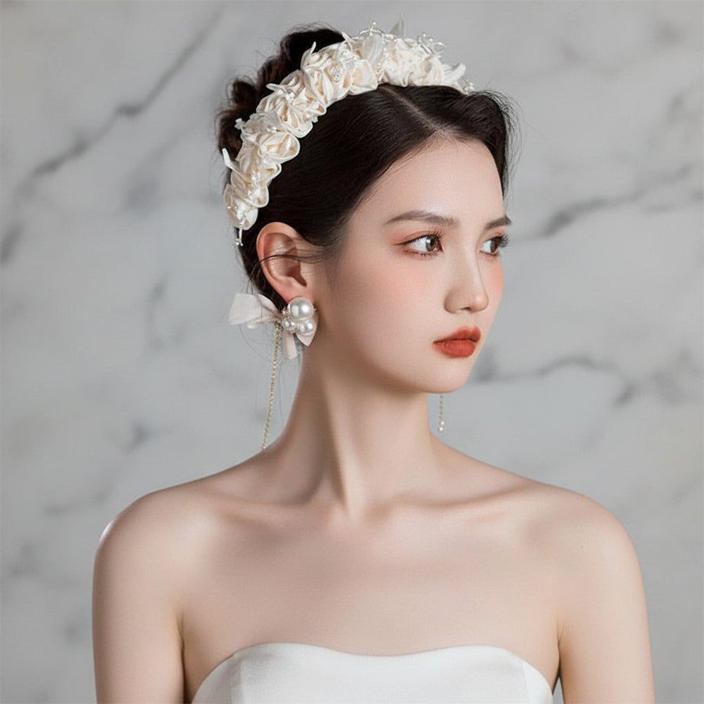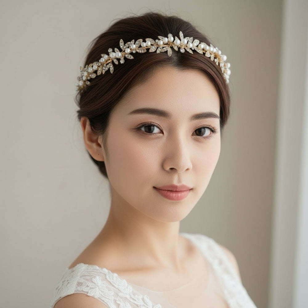 ティアラよりもカジュアルでありながら、華やかさを引き立てるカチューシャ。花嫁様のヘアスタイルを彩る、エレガントなアクセントとしておすすめです。