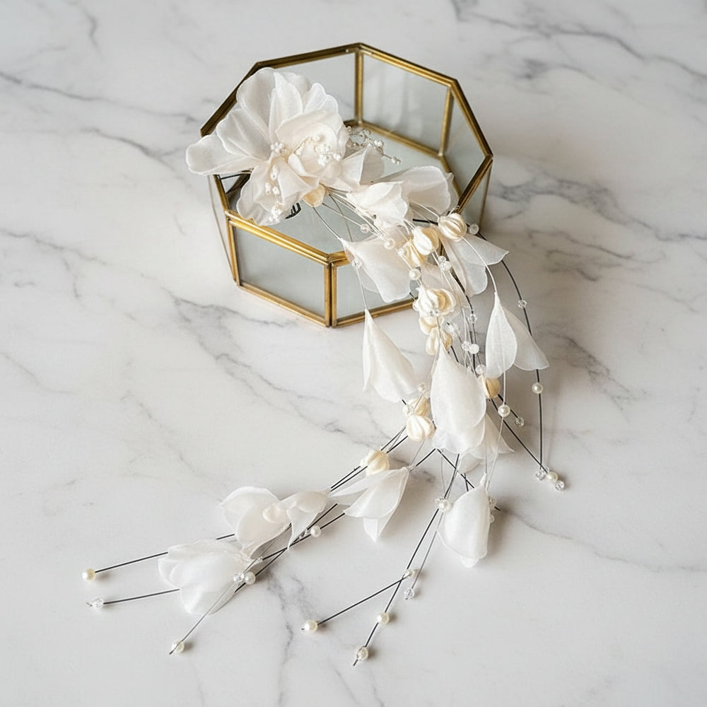 風に舞う花びらのような軽やかさと、幻想的な存在感を併せ持つヘッドドレス