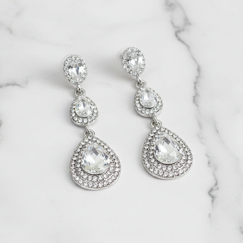 ご新婦さまから溢れる、感動的な涙のようなモチーフがブライダルシーンに最適なピアスです。
